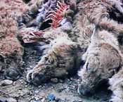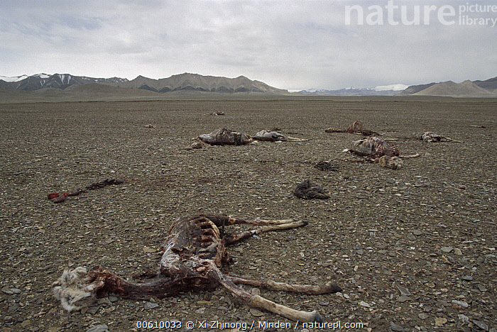 Chiru (Pantholops hodgsonii) carcasses of animals killed by poachers for their valuable fur, Arjin Mountain Nature Reserve, Xinjiang, northwestern China