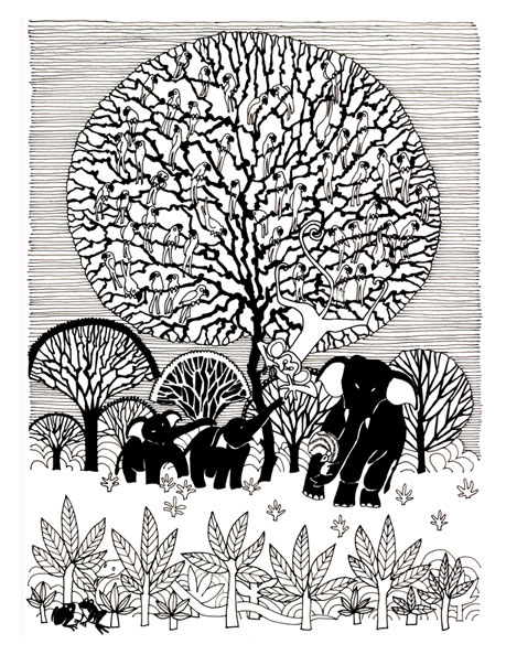 The original Panchatantra is a collection of tales of wisdom and rightful conduct. They are, for most part, set in the jungles of India, where animals play central characters. So, it only made sense to set this image in a jungle, with a large Pipal tree as its central motif – the same tree species under which, the Buddha attained enlightenment.