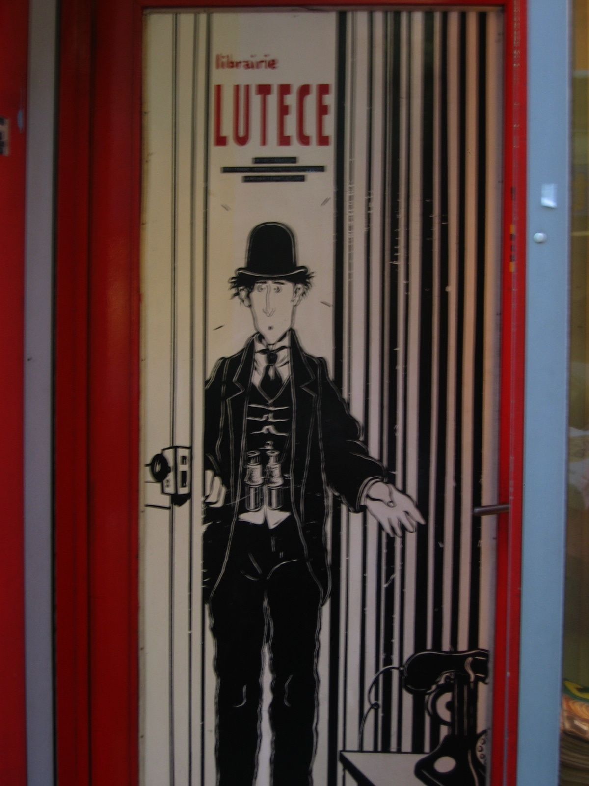 I am re-reading Persepolis by Marjane Satrapi after watching the movie, and am curious to learn more about her. Aaah yes, the limitless web seduces me. I find out that she is influenced by David B., another French comic book artist, whose book Epileptic has just arrived in the mail. He, in turn, has been influenced by Jacques Tardi – the creator of the hatted man opening a door within the door of a comic book store, somewhere in the Quartier Latin, which stopped me to take the last two pictures of the day before the camera ran out battery. The man at the door is Arthur Même of Ici Même – written by Jean-Claude Forest, and illustrated by Jacques Tardi in À Suivre!! It all comes together nicely! Isn’t life fascinating?