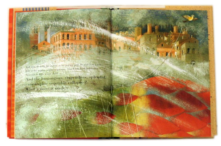 I was at the Oakland Public Library this afternoon, and love the paintings inside the Mighty Asparagus by Vladimir Radunsky. I am looking forward to reading more of his books.