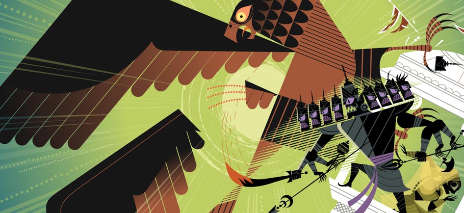 Sanjay Patel. Ravana Encounters Jatayu. Chronicle Books. 2010.