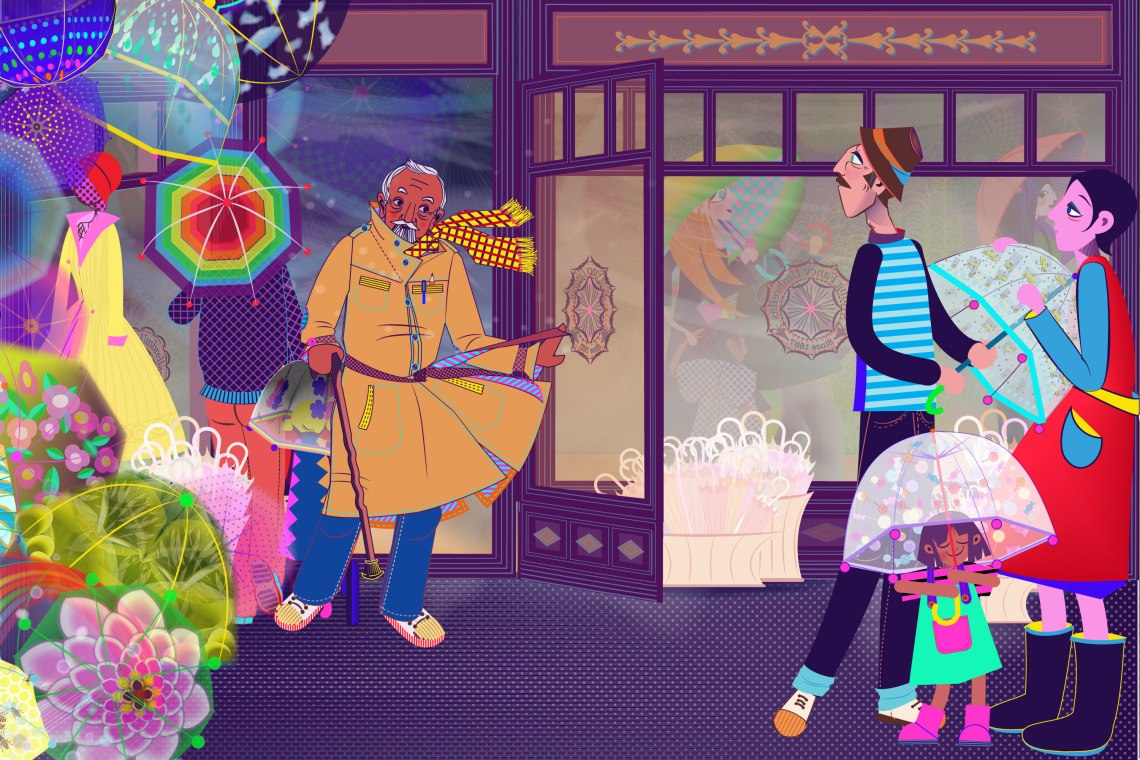 Was a very busy umbrella store. At the very back of this umbrella store, lived a little umbrella named Mimi. But, Mimi wasn’t fancy at all… in fact, she was just a plain black umbrella. But Mimi had a secret, which, made her special… very special indeed. On rainy days, lots of people came into the umbrella store to buy, well …umbrellas! And the shopkeeper would always show them his fanciest umbrellas. And the shopkeeper never showed little Mimi to anyone and no one even noticed her. So she waited quietly at the back of the store hoping someone would see her.
