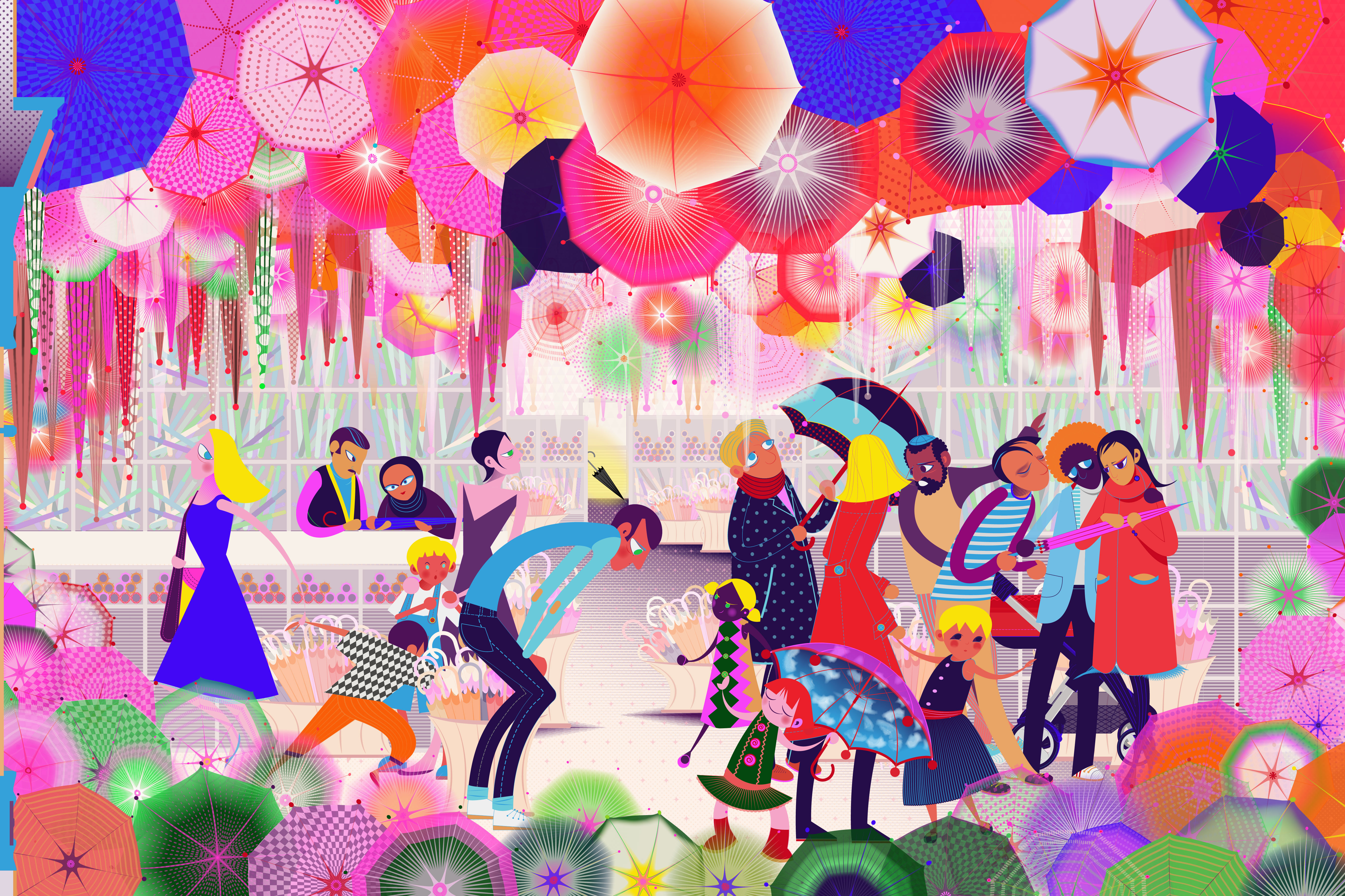 Aditi Raychoudhury. A Very Busy Umbrella Store 2019. Adobe Illustrator